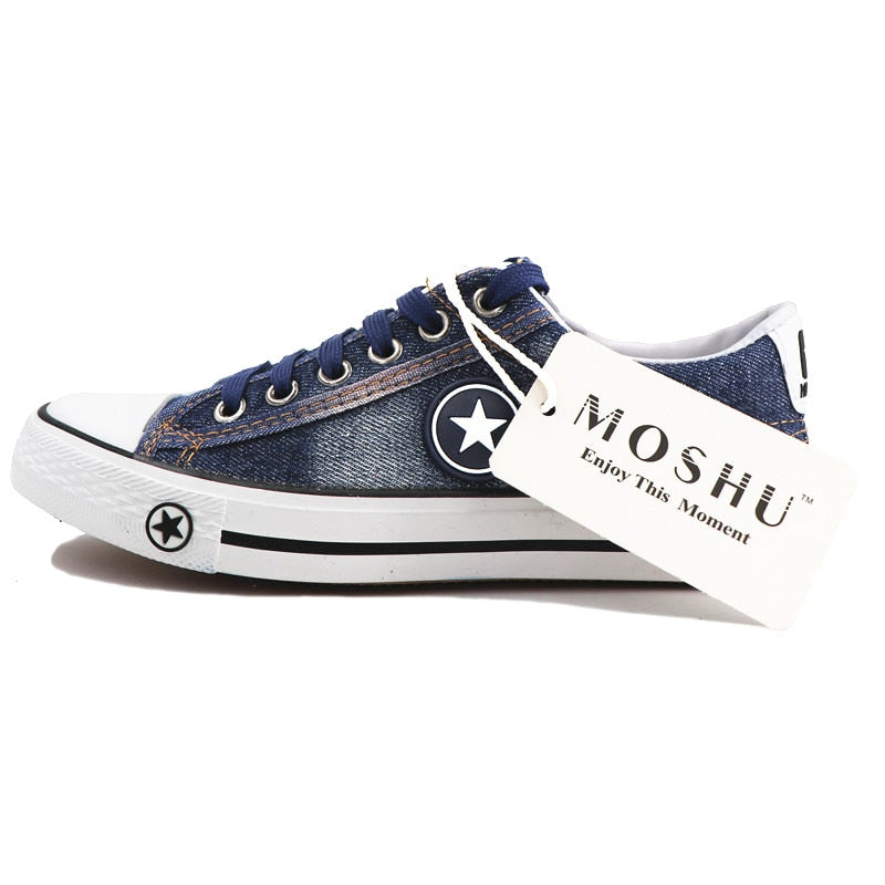 Fashion Women Sneakers Denim Casual Shoes Female Summer Canvas Shoes Trainers Lace Up Ladies Basket femme Stars tenis feminino